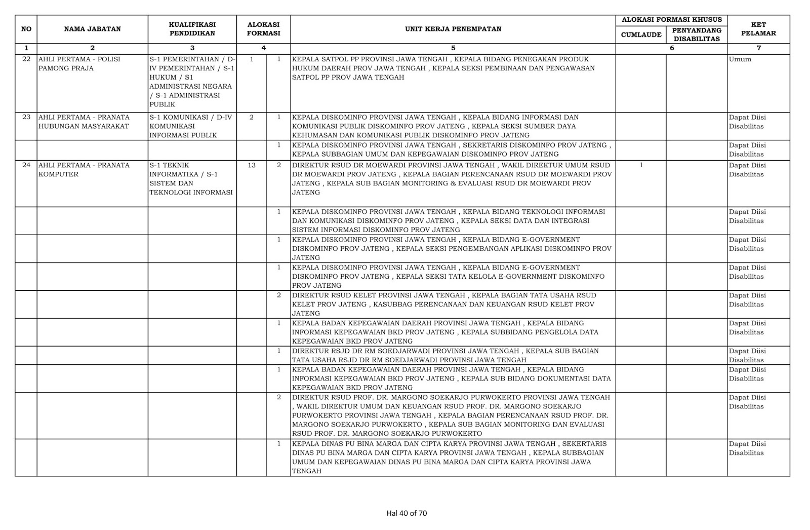 Berdasarkan Keputusan Menteri Pendayagunaan Aparatur Negara dan Reformasi Birokrasi Republik Indonesia Nomor 326 Tahun 2019 tentang Penetapan Kebutuhan Pegawai Negeri Sipil di Lingkungan Provinsi Jawa Tengah Tahun Anggaran 2019, Pemerintah Provinsi Jawa Tengah memanggil Putra Putri terbaik Bangsa yang berintegritas untuk mewujudkan Jawa Tengah Berdikari dan Semakin Sejahtera Tetep Mboten Korupsi Mboten Ngapusi untuk mengikuti Seleksi CPNSD 2019, dengan ketentuan sebagai berikut: