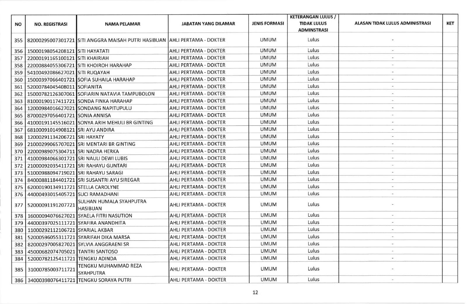HASIL SELEKSI ADMINISTRASI PENERIMAAN CALON PEGAWAI NEGERI SIPIL (CPNS) KABUPATEN SERDANG BEDAGAI TAHUN ANGGARAN 2019